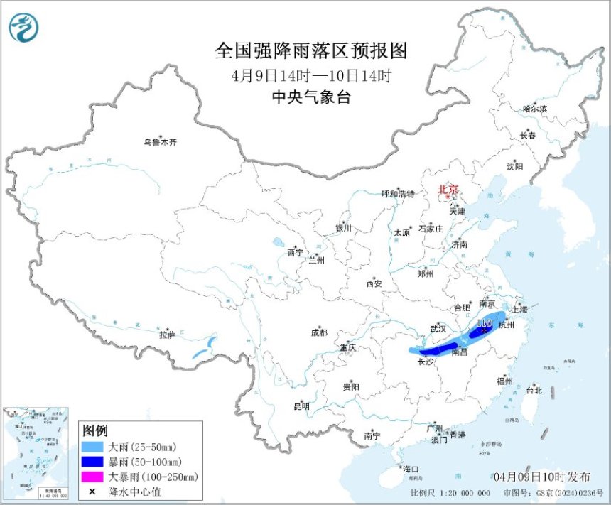 中央气象台4月9日10时继续发布暴雨蓝色预警