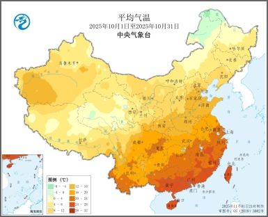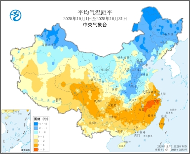 图1全国平均气温及气温距平数图(2025年10月1日至10月31日)