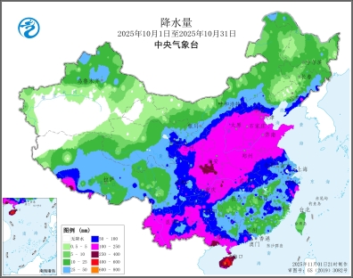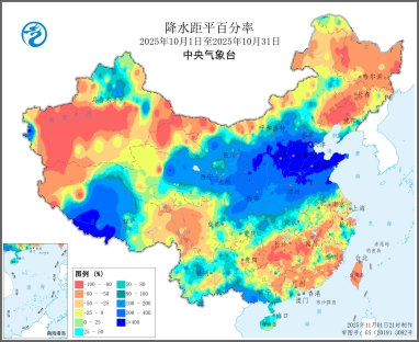 图2全国降水量及降水距平百分率图(2025年10月1日至10月31日)