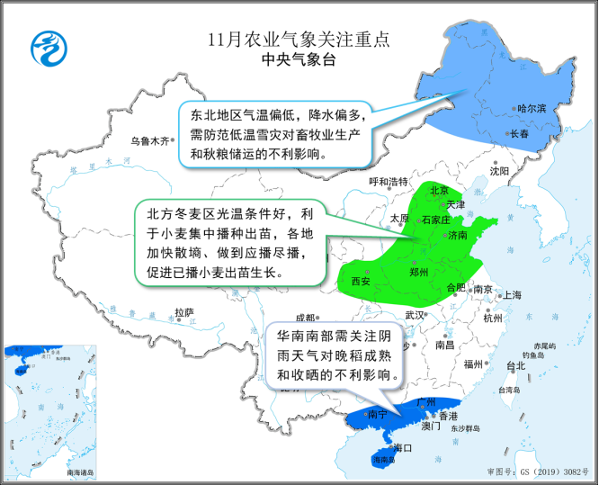 图5 11月农业气象关注重点