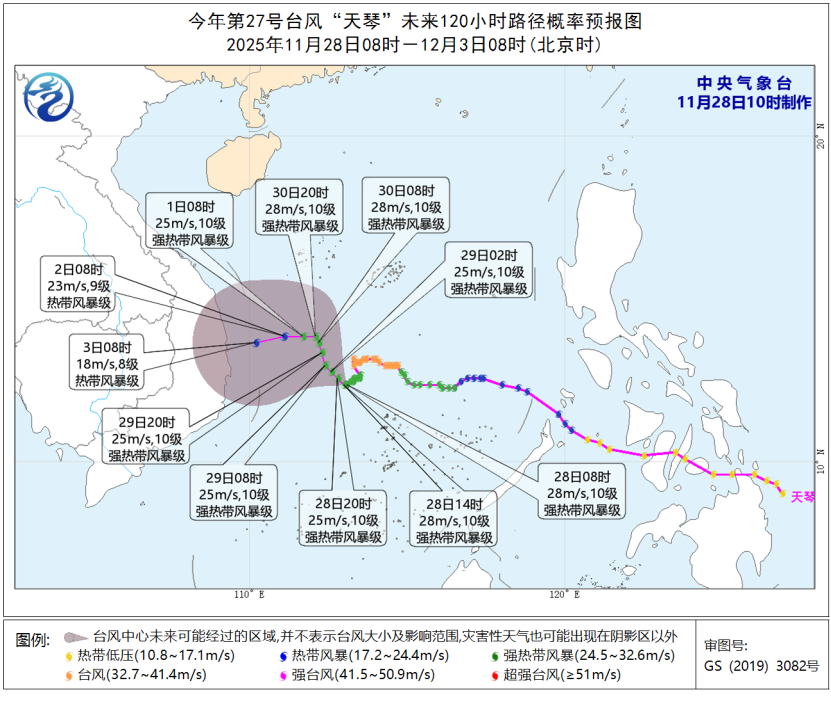 中央气象台11月28日10时继续发布台风蓝色预警: