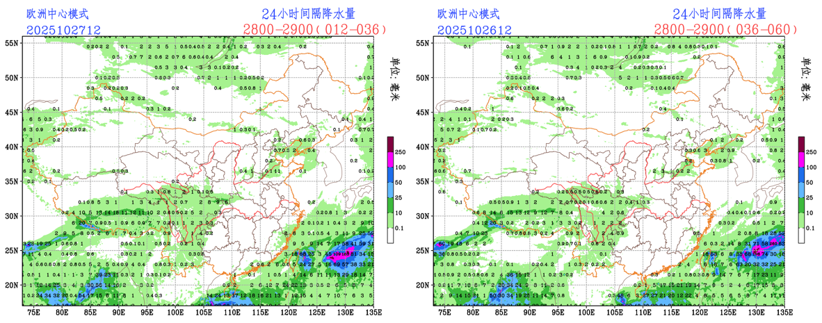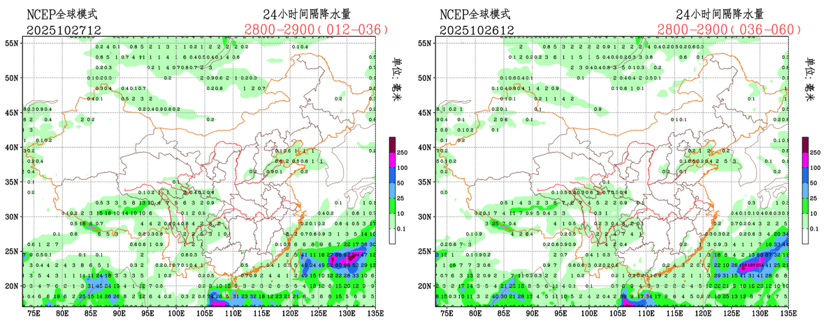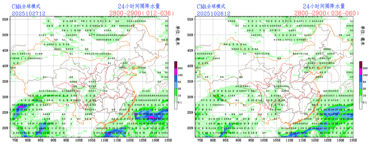未来24小时,EC对陕西南部降水量级有所调大,CMA-GFS对西藏东南部降水量级有所调大,对辽宁地区降水落区有所调小,NCEP对西藏东南部降水量级有所调大。预报员可参考模式结果进行必要订正。