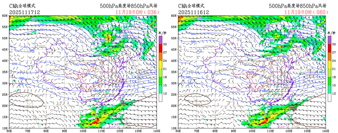 受强冷空气影响,预计,11月18日08时至11月19日08时,四川东部和南部、重庆、江西东部和南部、浙江南部、云南东部、广西、广东、福建、海南岛等地大部将先后降温6~8℃,其中,广西南部、广东西南部等地部分地区降温可达10℃。最低温度0℃线将南压到苏皖南部至湖北中部一带。