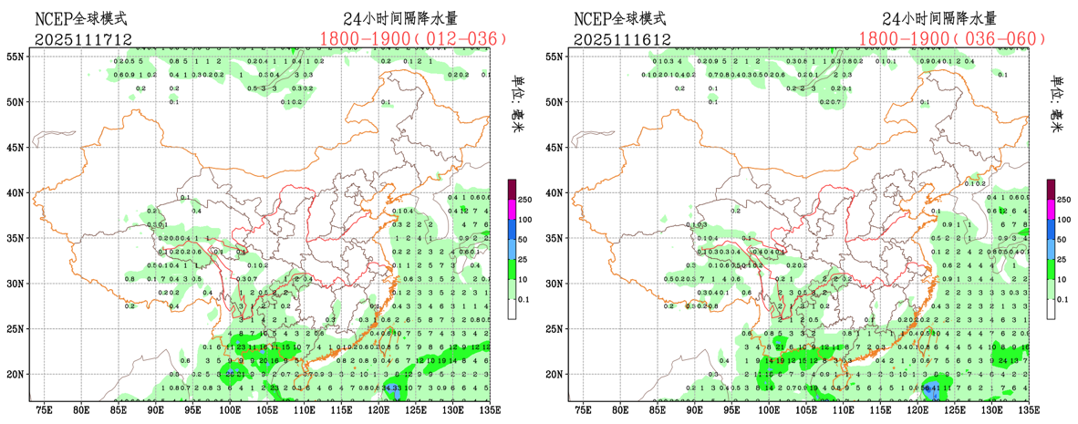 未来24小时,EC、NCEP和CMA-GFS模式降水落区预报调整较小,整体较为稳定。