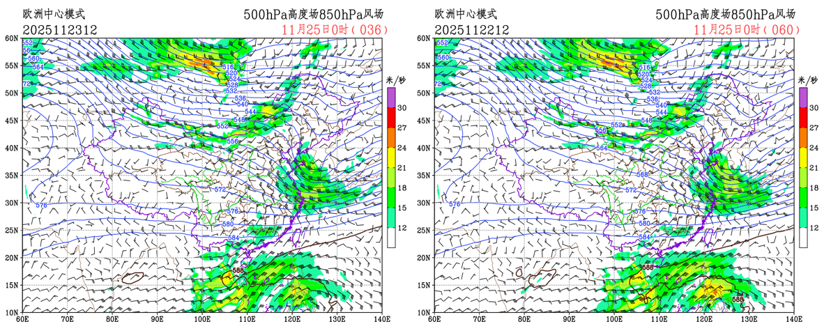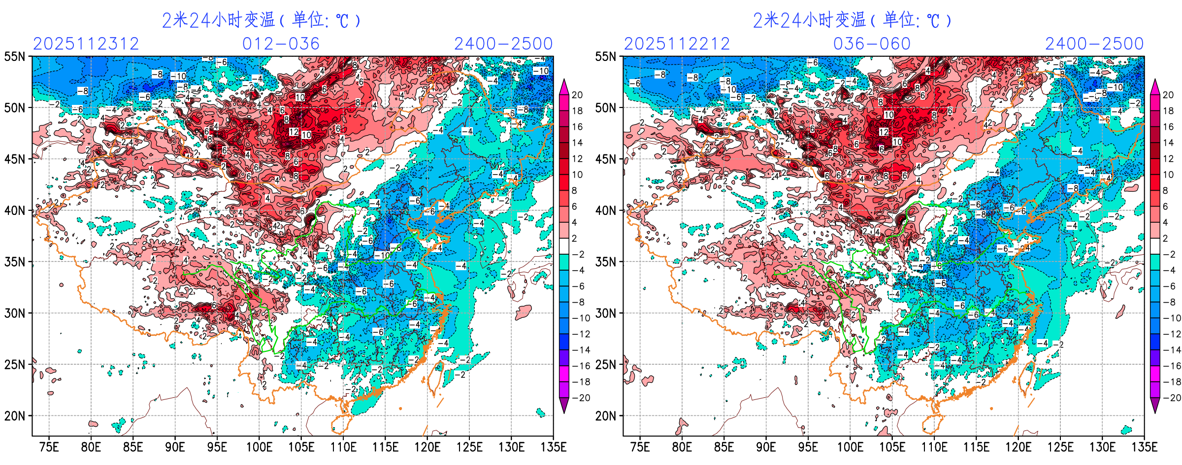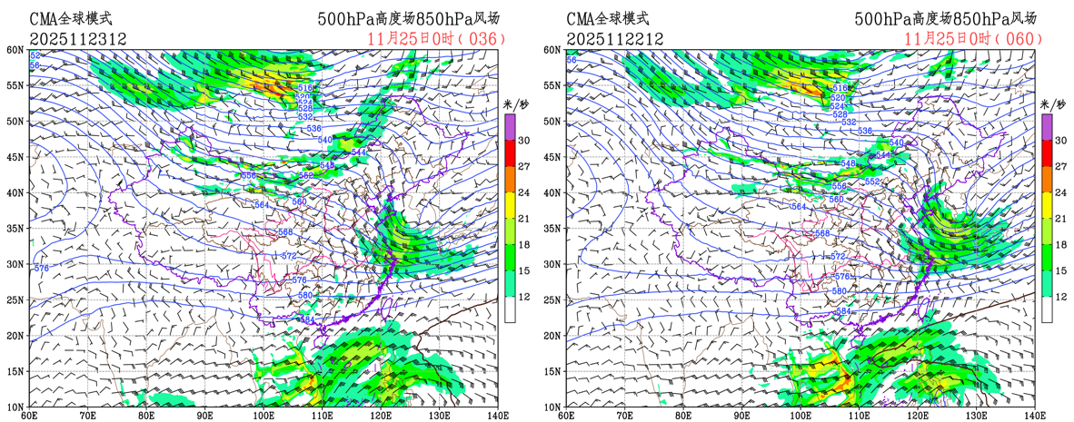 预计,11月24日至25日,较强冷空气自西向东继续影响我国中东部地区,将带来4~8℃降温,北方局地降温可达10~12℃,长江以北伴有5~7级偏北风,局地阵风8~9级,华北北部及东北地区等地有小到中雪,西藏东部、川西高原等地局地有大雪。