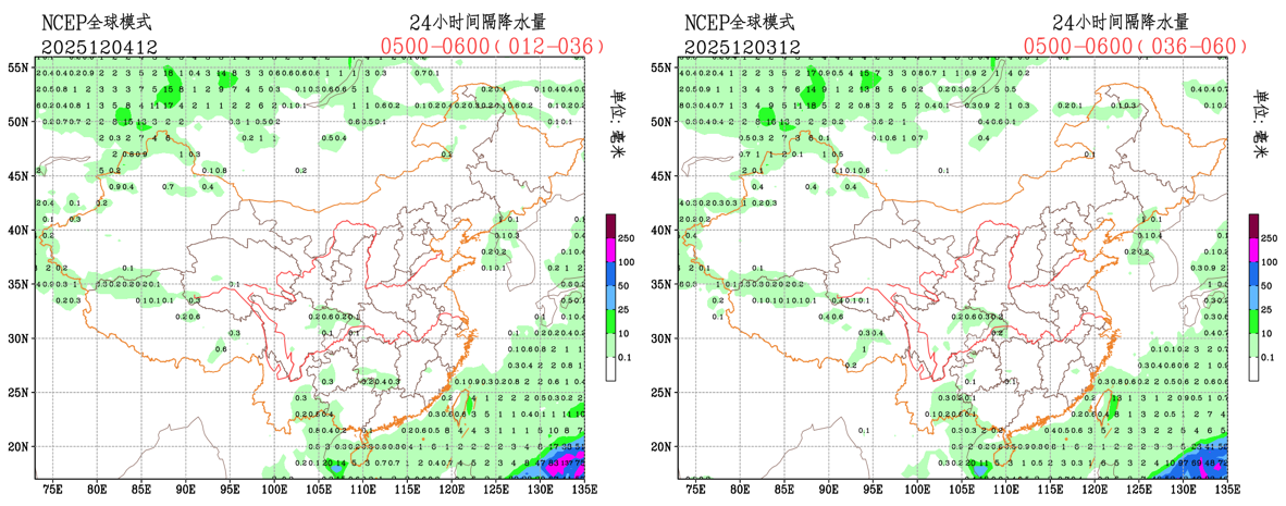 未来24小时,EC对于降水落区和量级的预报调整不大,CMA-GFS对于贵州中西部的降水落区略有调小,NCEP对于湖南南部的降水落区略有调大,预报员可参考模式结果进行必要订正。