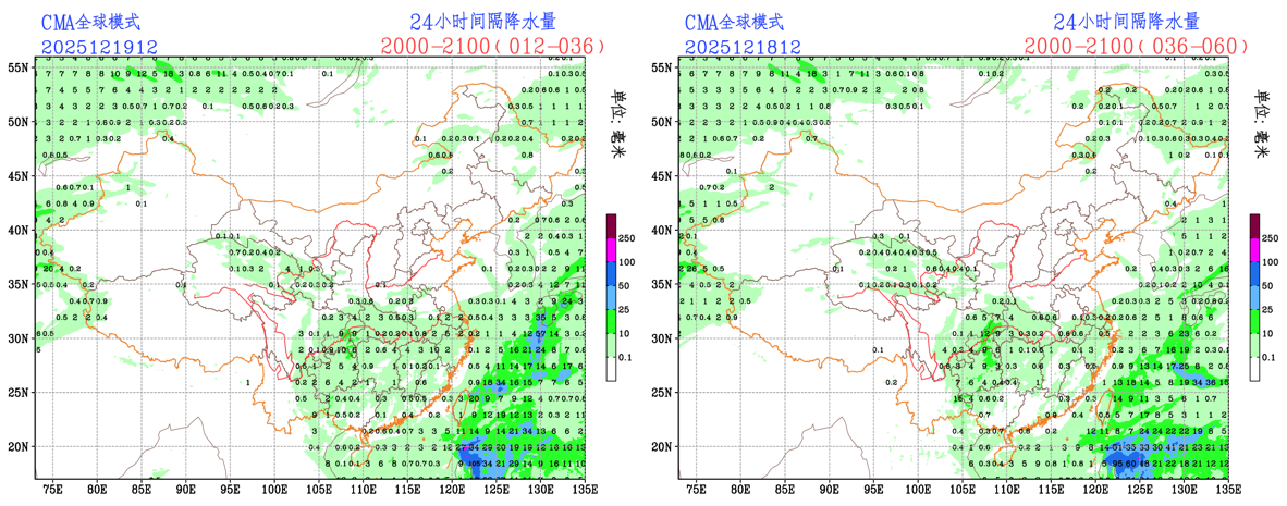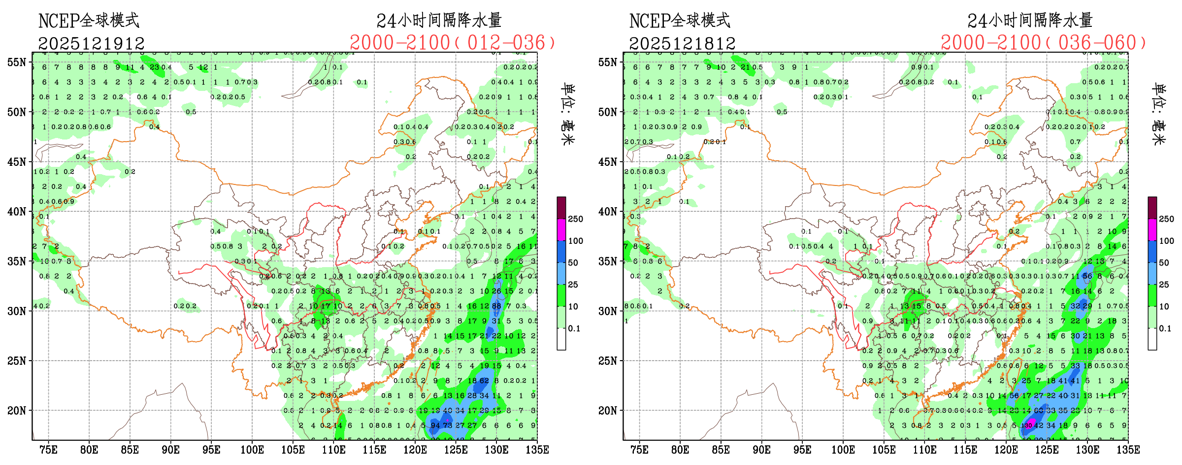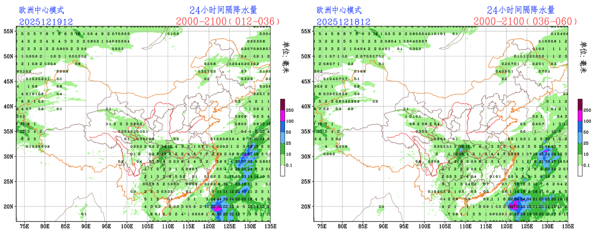 未来24小时,EC模式对江汉地区降水量有所调大,对华南地区降水量有所调小;CMA模式对江汉地区、江南地区和华南地区降水量均有所调小,对东北地区北部降水量有所调大;NCEP模式对江汉地区、江南地区和华南地区降水量均有所调小。预报员可参考模式结果订正预报。