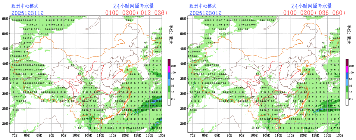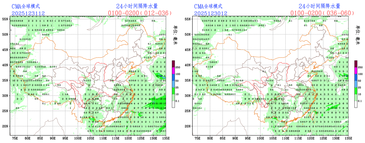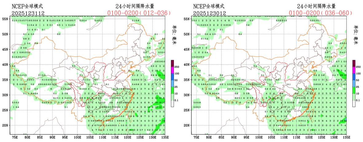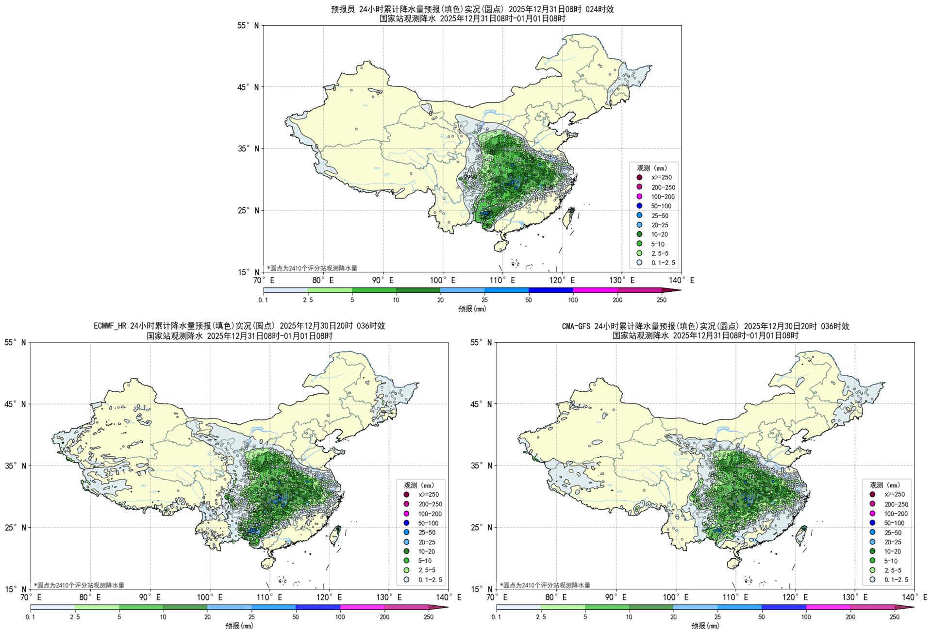 未来24小时,模式预报整体稳定性较好,EC和CMA-GFS模式对南疆盆地、甘肃的降水落区预报略有调整,NCEP模式对湖南的降水落区预报略有调整,预报员可参考模式预报结果进行预报订正。