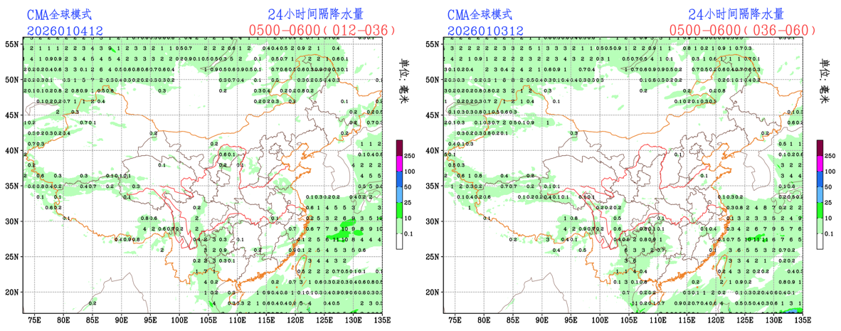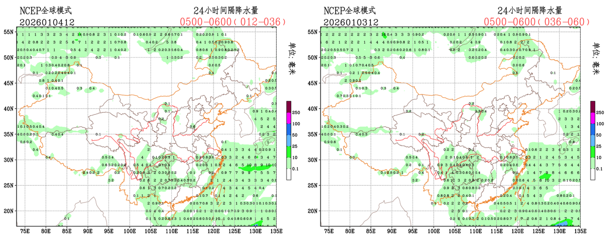 未来24小时,EC和CMA-GFS模式模式预报整体稳定性较好,NCEP模式对贵州西南部地区的降水量级有所调大,预报员可参考模式预报结果进行预报订正。