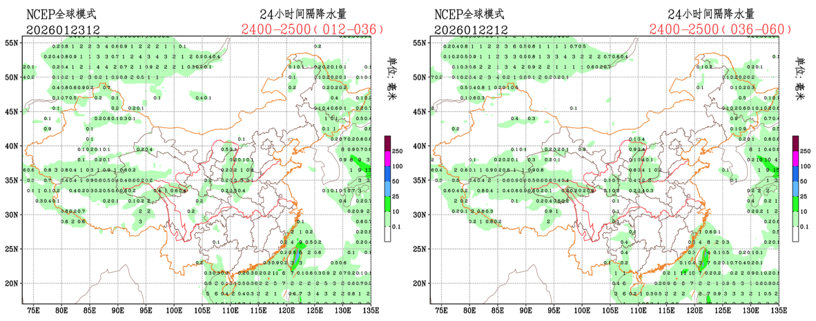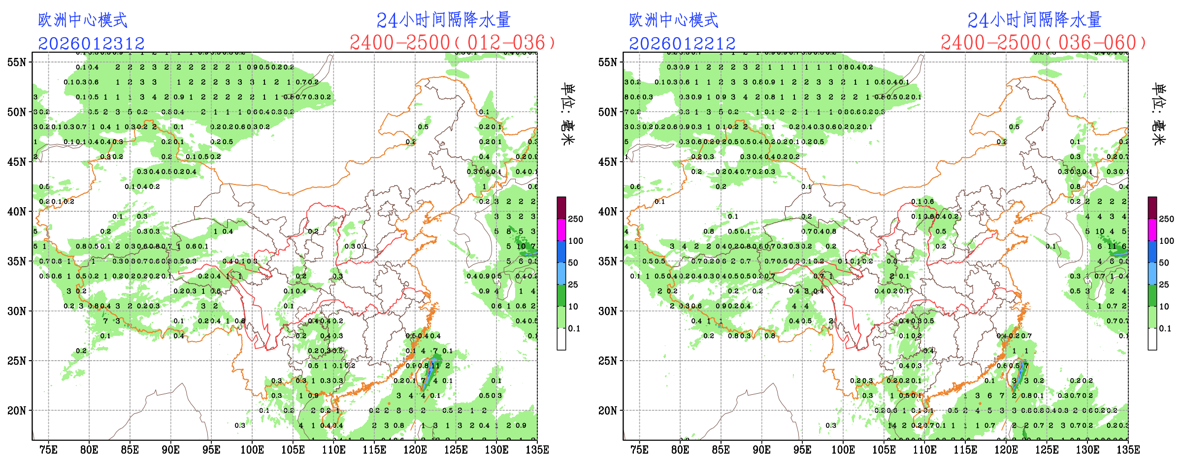 过去24小时,预报员对小雨量级降水预报TS评分略低于CMA-GFS模式和EC模式;预报员对贵州西部、广西南部的降水存在漏报,对西藏西部、新疆西部局地的降水存在空报;EC模式对贵州西部、广西南部的降水存在漏报,对西藏西部、新疆西部局地的降水存在空报;CMA-GFS模式对广西南部的降水存在漏报,对西藏西部的降水存在空报
