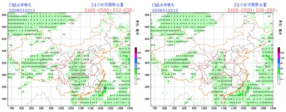 未来24小时,EC模式对山西北部的降水范围略有调小;CMA-GFS模式对山西大部的降水范围略有调大;NCEP模式对贵州东部的降水范围略有调小,预报员可参考模式预报结果进行预报订正。
