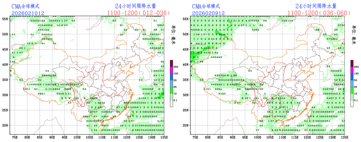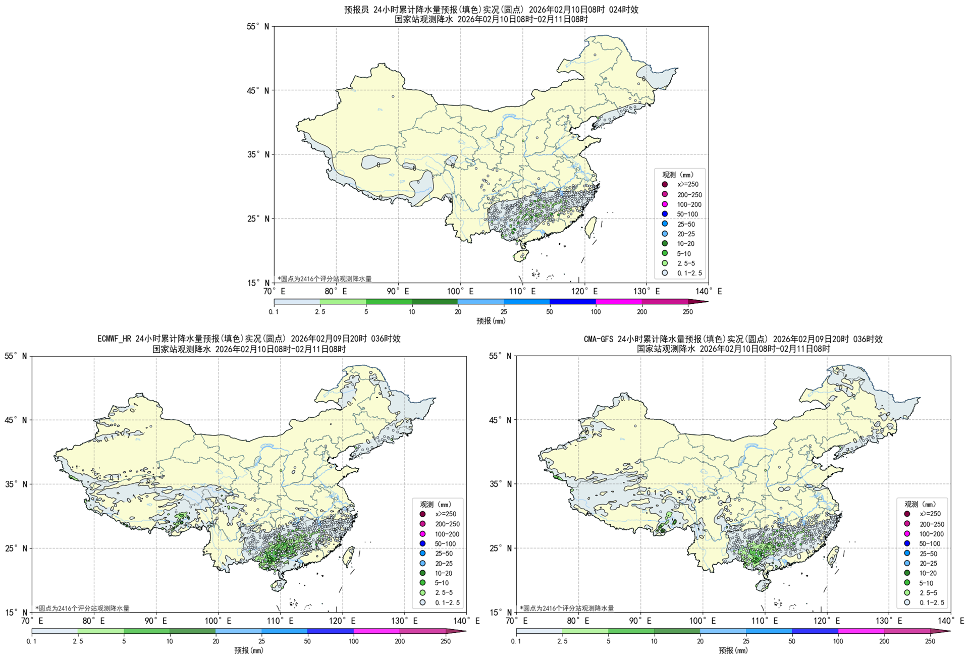 未来24小时,EC模式调小了华南西部和江南西部的降水量;CAM模式调小了西藏、华南西部和江南西部的降水量和降水范围;NCEP模式调小了华南西部和江南西部的降水量。预报员可参考模式结果订正预报。