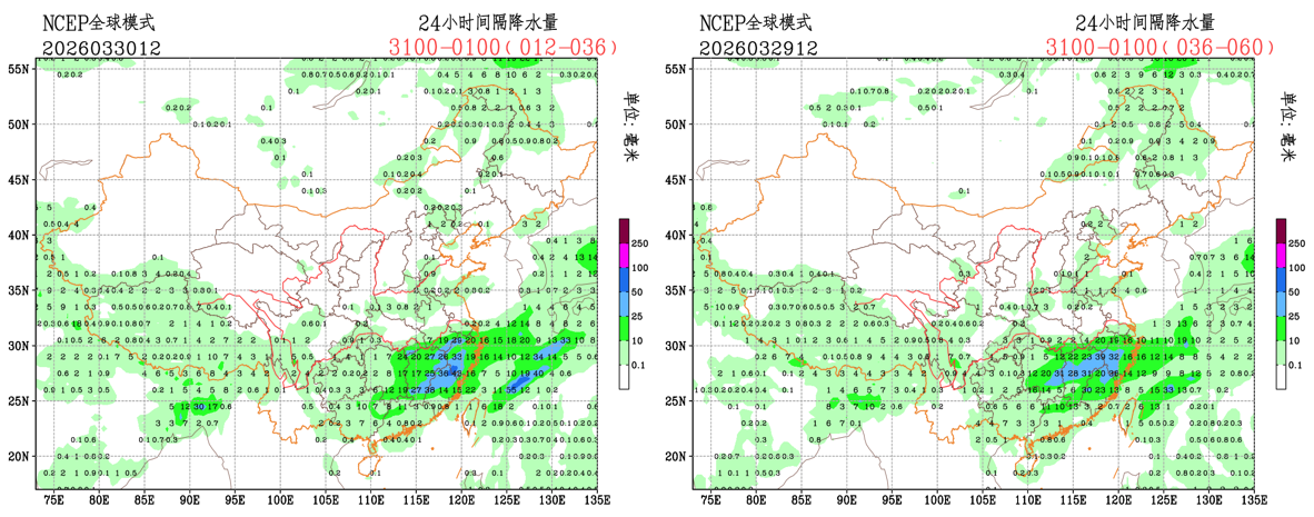 未来24小时,EC模式对全国降水量级和落区的调整不大;CMA模式调小了广西大部的降水量级,NCEP模式调小了江西中北部的降水量级,调大了福建中南部的降水量级。