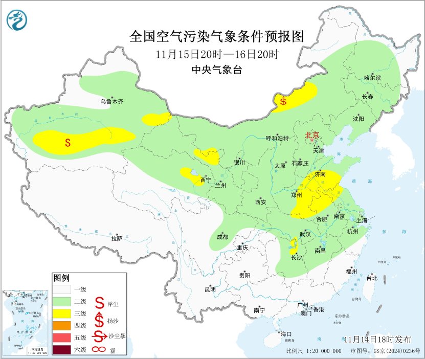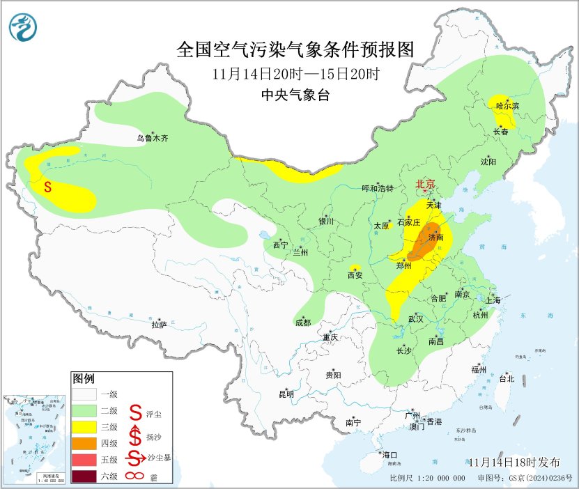 14日夜间至15日,华北中南部、黄淮、江淮、江汉等地的部分地区有轻至中度霾天气。16日至20日,受冷空气影响,全国大气扩散条件转好,上述霾天气将自北向南逐渐减弱消散。