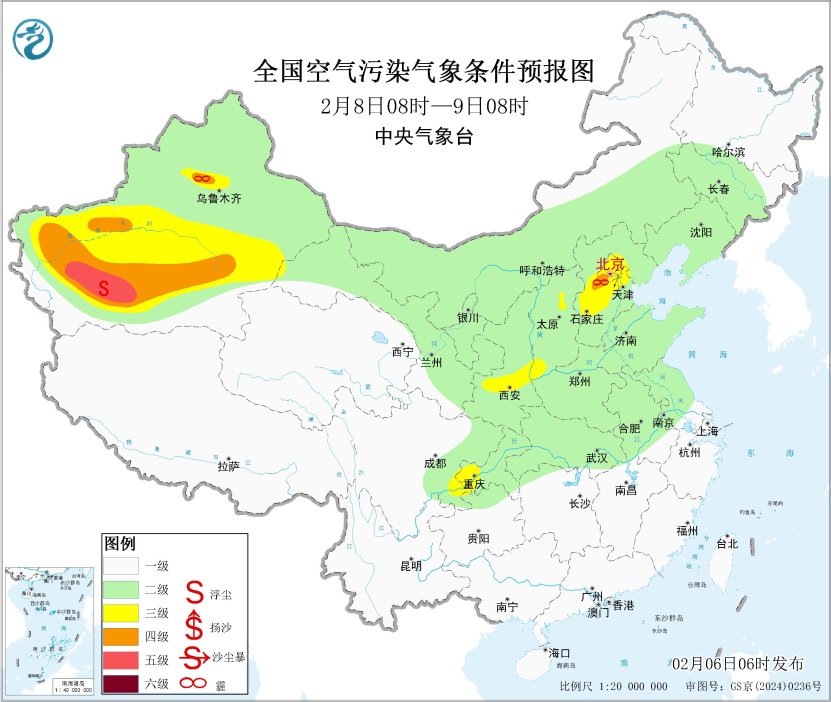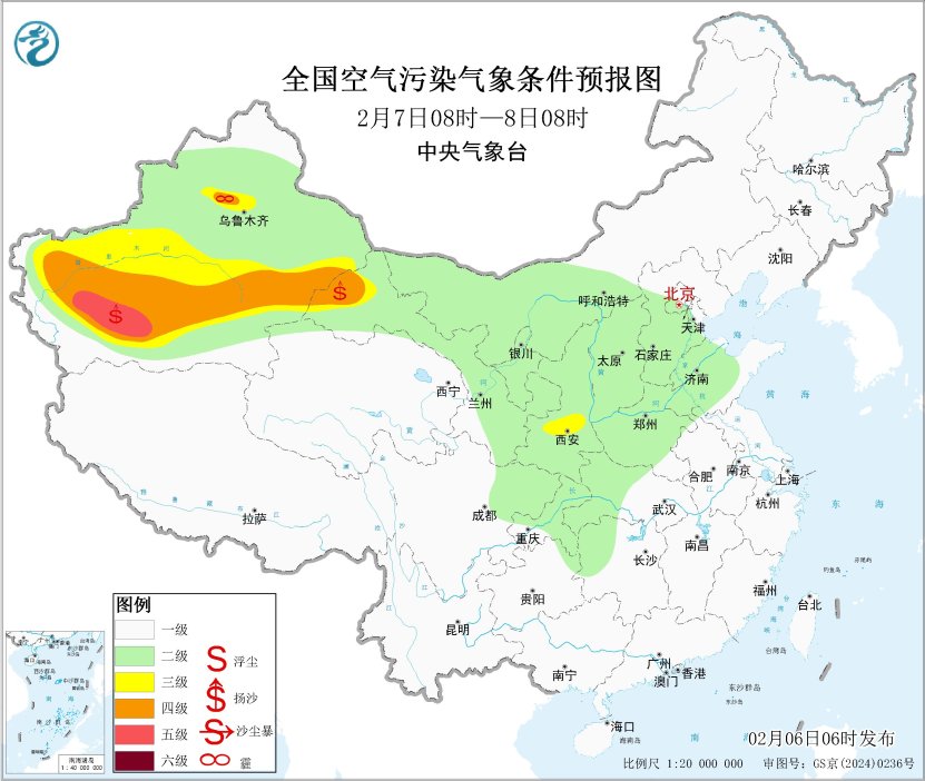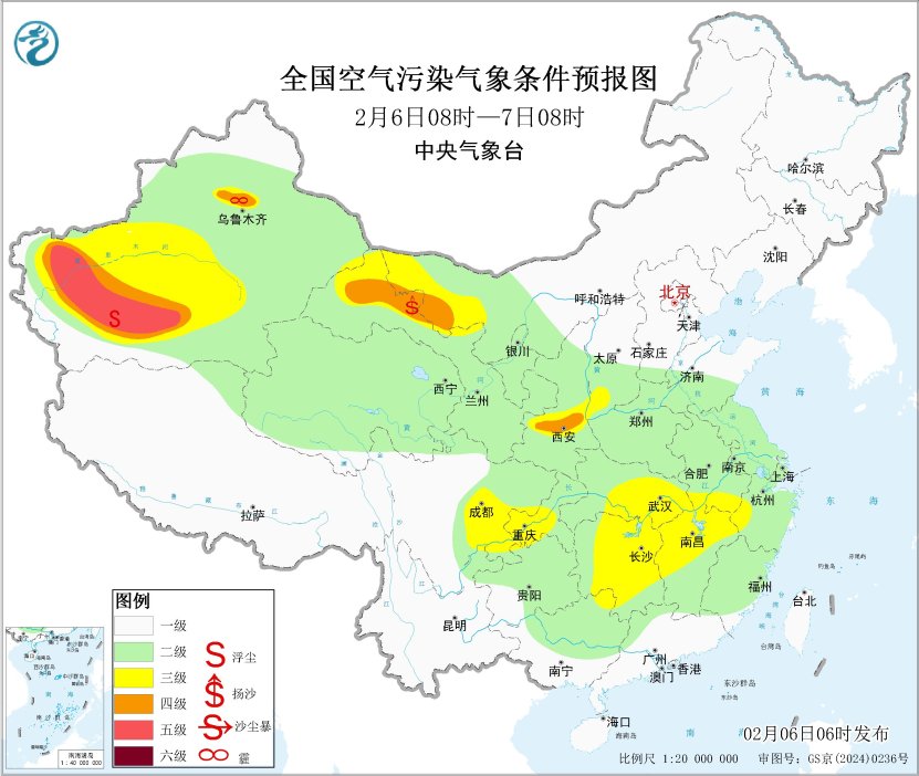 未来一周,新疆天山北坡大气扩散条件一般,有轻至中度霾,局地重度霾,夜间至早晨时段有大雾天气。此外,6日至7日,新疆东部和南疆盆地、内蒙古西部、甘肃河西等地有扬沙或浮尘。