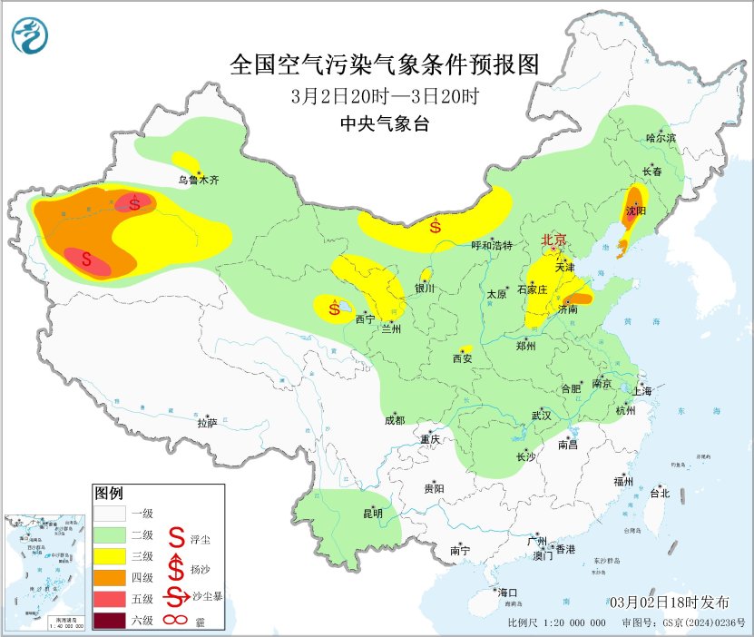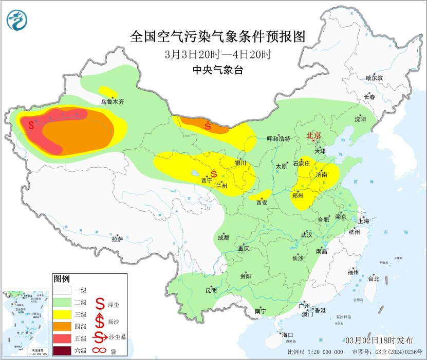 此外,2日夜间至3日,新疆南部、内蒙古中西部、甘肃中部等地的部分地区将有扬沙或浮尘天气。4日至5日,新疆东部和南部、内蒙古西部、青海北部、甘肃西部、宁夏中北部、陕西北部等地的部分地区将有扬沙或浮尘天气。