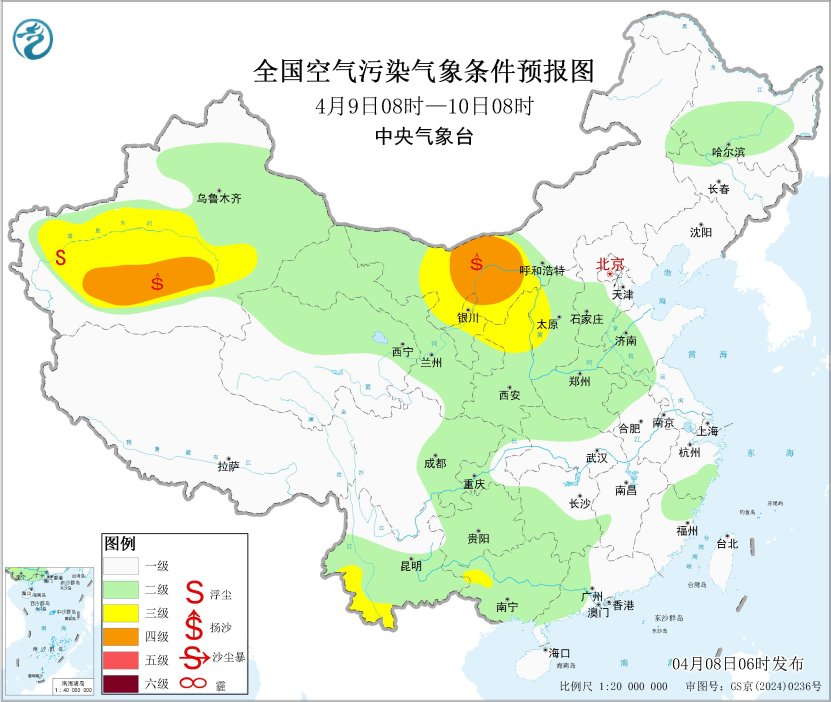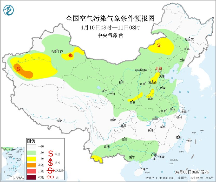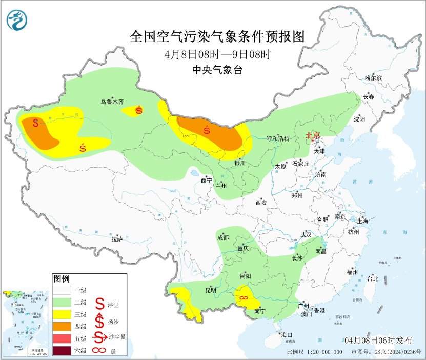 8日至9日,新疆东部和南部、甘肃西部、内蒙古西部、宁夏北部等地的部分地区有扬沙或浮尘天气。8日早晨至上午,重庆南部、贵州中部、湖南中南部、江西西部等地的部分地区有大雾天气,局地有能见度不足200米的强浓雾。未来一周,全国大部大气扩散和湿清除条件总体较好,无大范围霾天气。