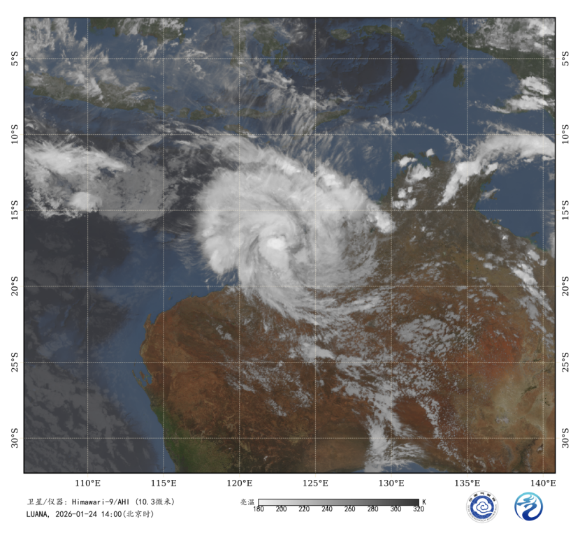 图1 卫星红外监测图像(北京时间2026年1月24日14时00分)