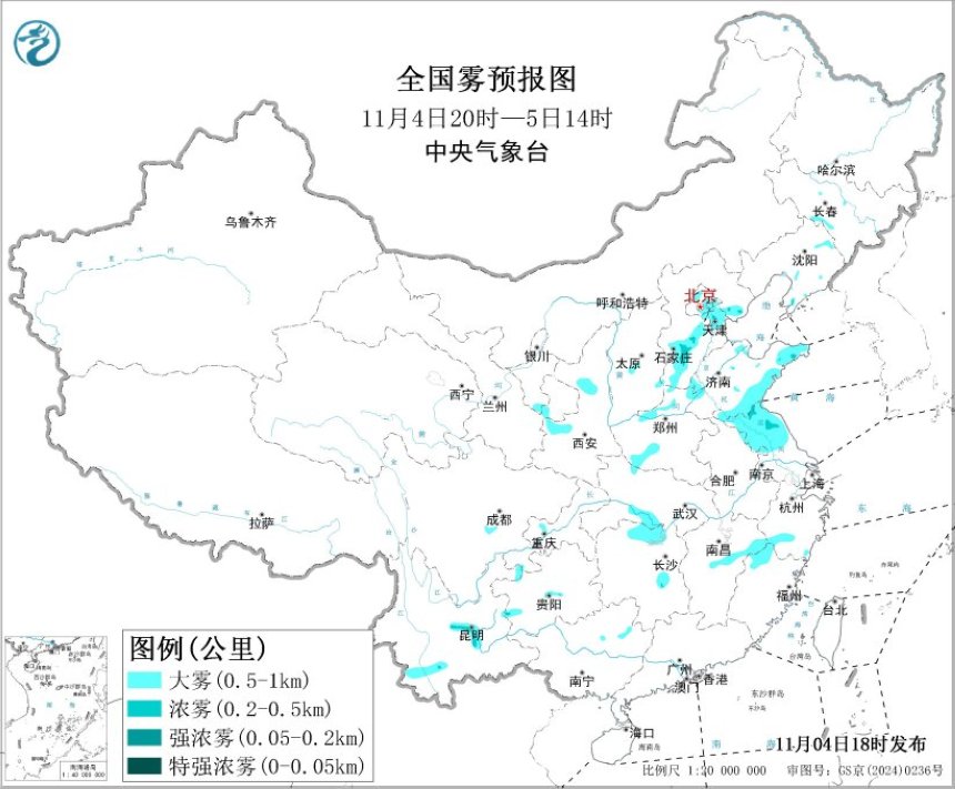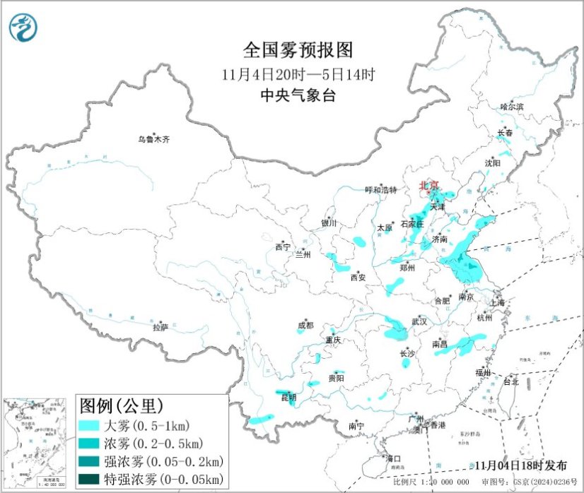 2025-11-04 18:03华北中南部黄淮等地有雾霾天气