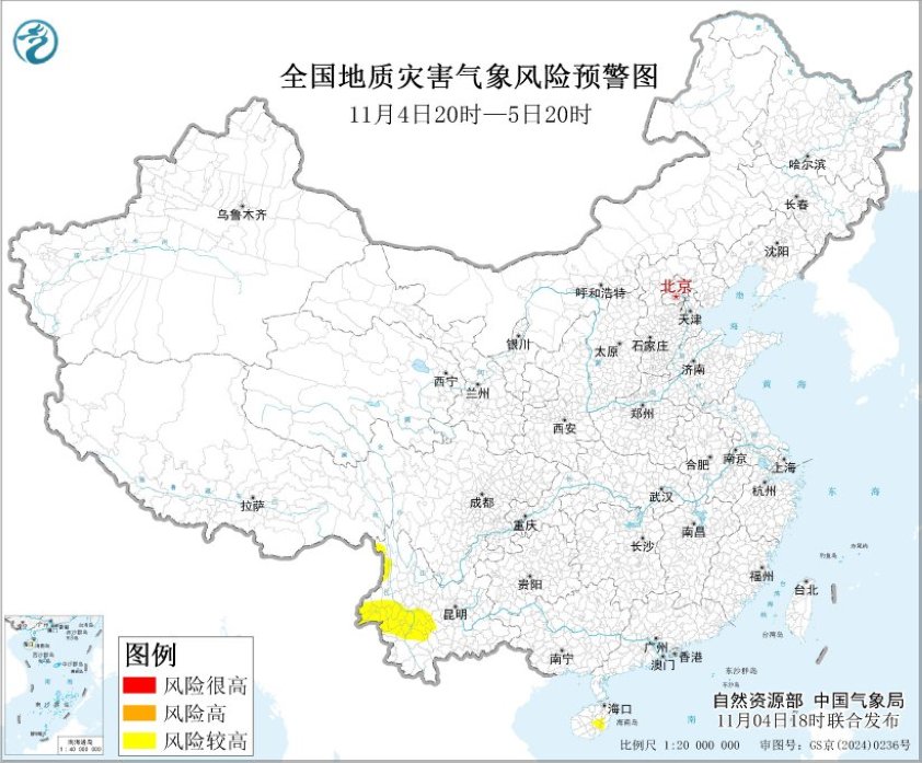 预警 2025-11-04 18:00自然资源部与中国气象局11月4日18时联合发布地质灾害气象风险预警