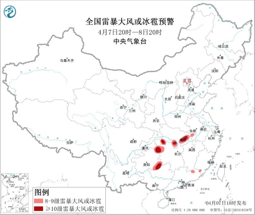 2026-04-07 08:30江汉江淮等地将有较强降水和强对流天气 北方及西南地区仍有大风天气