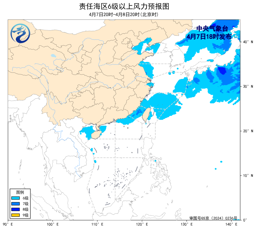 2026-04-07 17:30我国北部和东部海域将有6~7级风