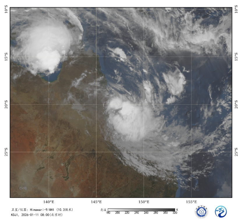 图1 卫星红外监测图像(北京时间2026年1月11日08时00分)