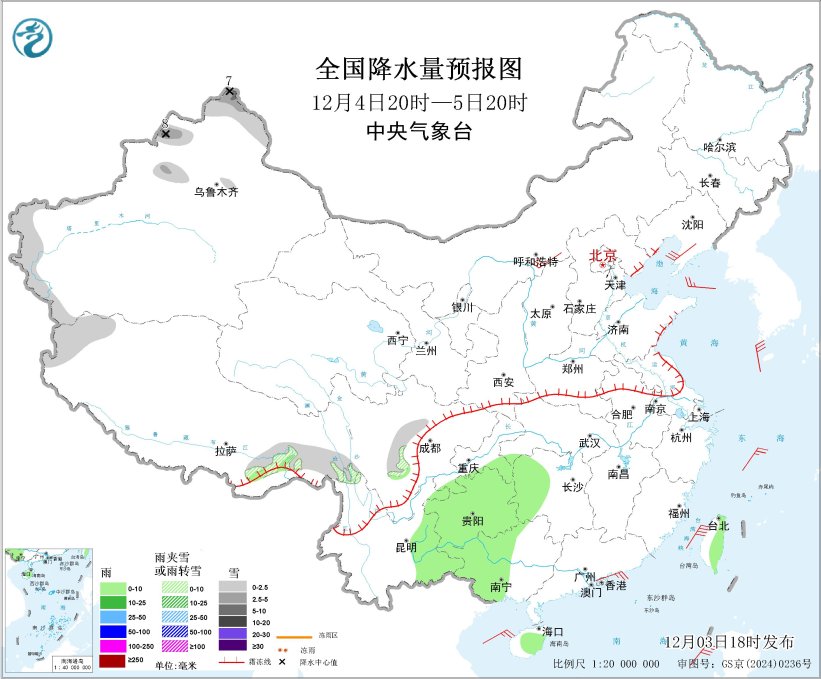 图1 全国降水量预报图(12月3日20时-4日20时)