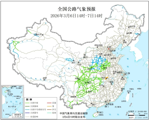 图3 全国公路气象预报图(3月6日14时至7日14时)