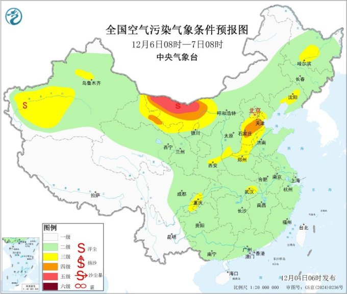 5日至6日白天,华北中南部大气扩散条件逐渐转差,部分地区将有轻度霾,局地中度霾。6日,新疆南部、甘肃西部、内蒙古西部、宁夏北部等地的部分地区有扬沙或浮尘天气,建议公众外出做好相关防护措施。
