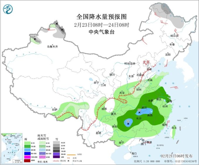 另外,在雨雪方面,21日白天至夜间,内蒙古中部和东北部、黑龙江西部等地部分地区有大雪,内蒙古东北部、黑龙江西北部等地部分地区有暴雪(10~18毫米);上述部分地区新增积雪深度8~10厘米,局地可达15厘米以上。明天,强降雪范围有所缩小,但内蒙古东北部、黑龙江西北部等局地仍有暴雪。明天(22日)起,南方将迎来新一轮降雨过程,江南、华南西北部的部分地区有大雨,局地暴雨,并伴有雷暴大风、冰雹和短时强降水等强对流天气,主要降雨时段为23日。