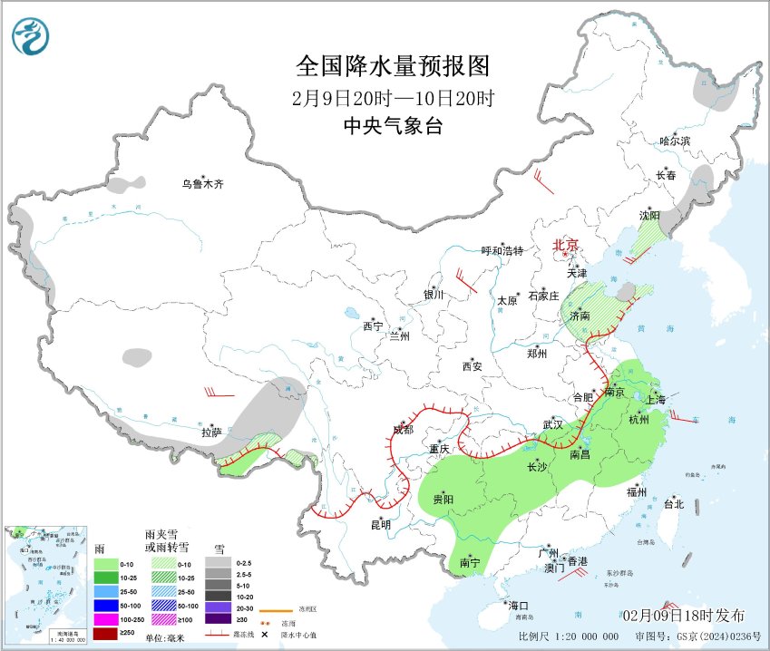 东部南部海域有大风 西南地区江汉江南等地有阴雨雪天气