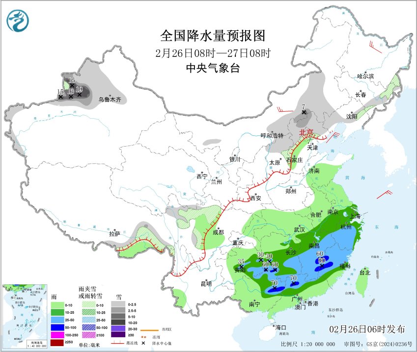 江西省发布暴雨黄色预警信号26日08时